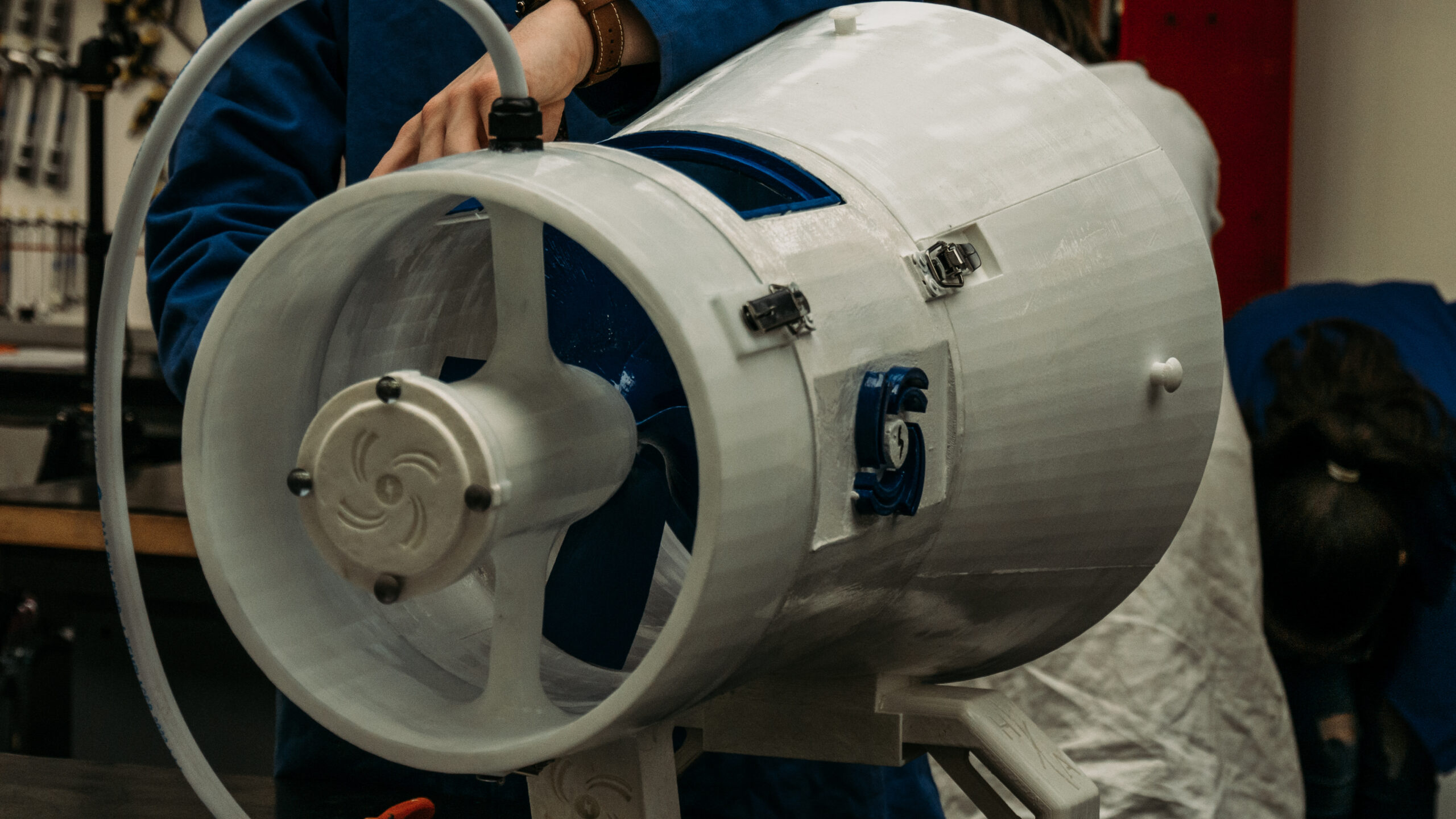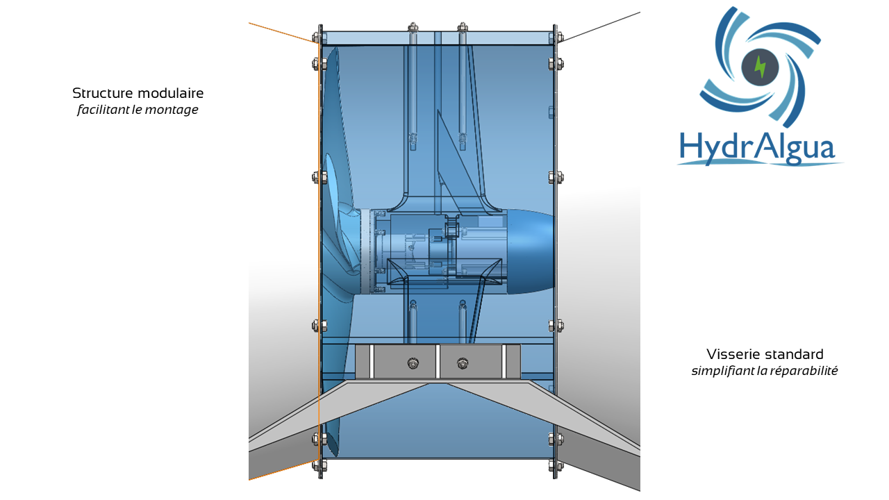 La grille est facilement enlevable par le haut de l'hydrolienne.